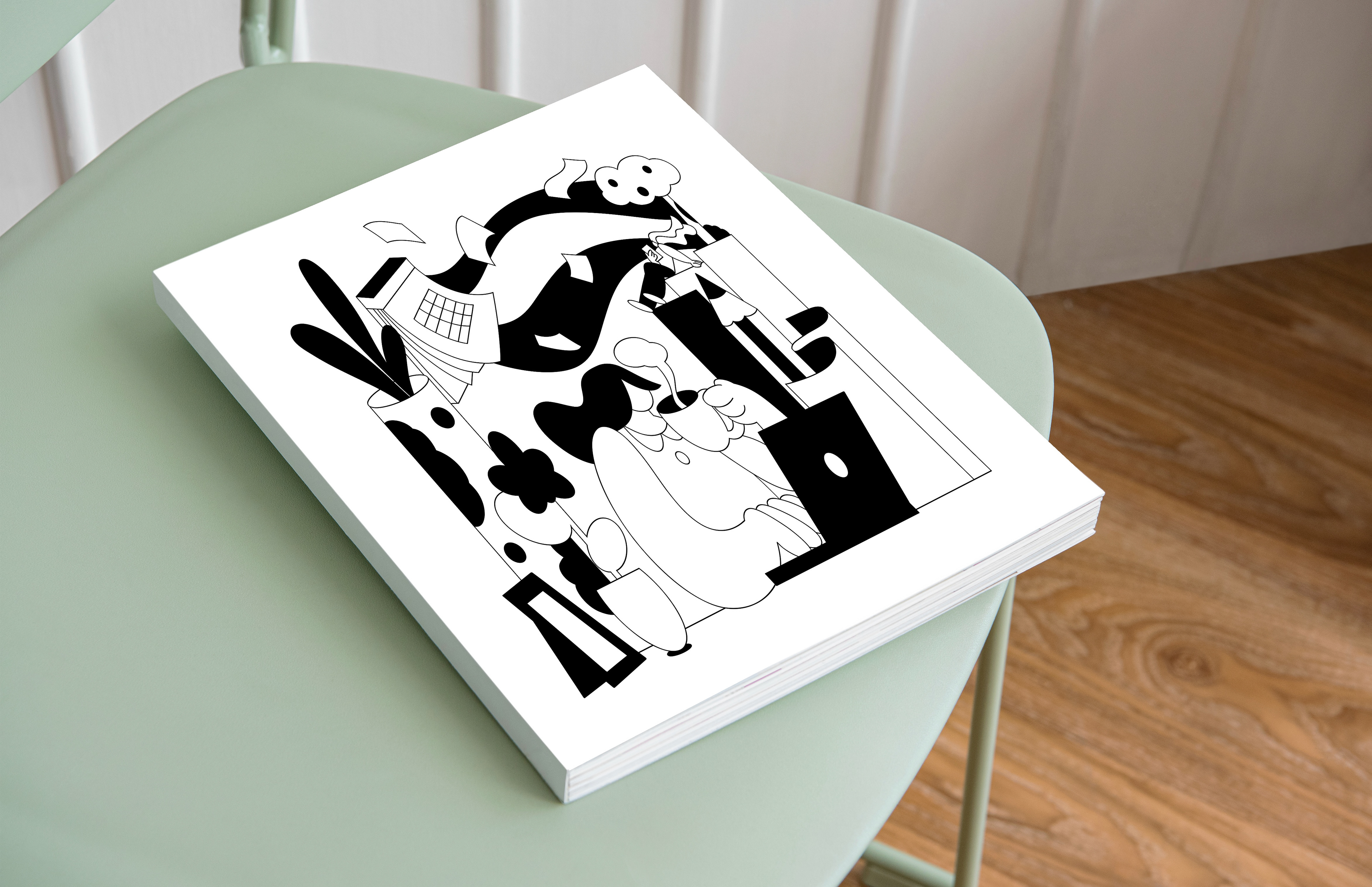 It was fun to do something different from what I am used to with characters designed differently from my style and something in black and white.